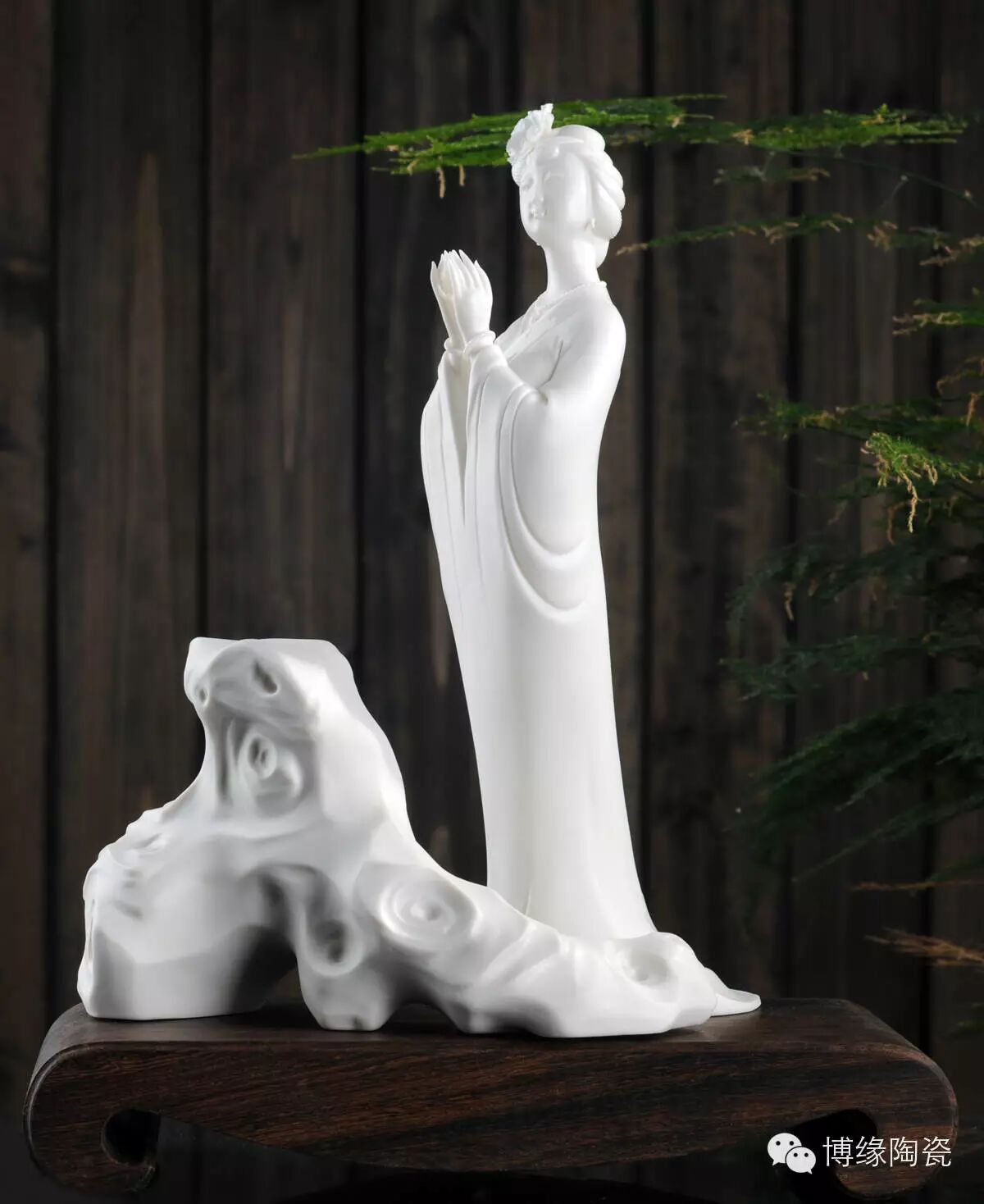 解放后,德化瓷业生产获得新生,特别是改革开放以来,全县瓷业进入了新的发展时期。1988年,经县工商管理部门记的瓷业厂家有229户,年末在册人员11615人,占全县职工总数的11.16%。陶瓷研究所、陶瓷学校、陶瓷机械厂、包装纸箱厂、花纸车间等科研、生产配套机构相继建立,过去落后的手工操作逐步为先进生产所代替。生产规模不断扩大。1988年全年瓷业产值5400多万元,占全县工业总产值的40%,占全县工农业总产值的19.82%。日用瓷器产量占全省瓷器总产量40%,出口瓷器量占全省出口瓷器总量三分之二。产品畅销国内二十多个省市和世界五大洲八十多个国家和地区。为全省对外贸易的一项重要商品。在中国陶瓷工业上也占有重要的位置。驰名中外的德化传统瓷雕,继承明代何朝宗的风格重放异彩。动用捏、雕、镂、刻相结合的技法,把优质原料和精湛技艺融为一体,具有独特的风格,现在德化生产的在历史传统题材的产品达390多种,各类姿式和规格的瓷观音有100多种,大型瓷雕《滴水观音》高达1.90米,气势端庄高雅最小的《披坐观音》,高仅5厘米,清逸隽秀。这些神态各异的造象,继承和发展了“传神写意”的传统技法,使瓷雕人物形神兼备,色彩明净,蕴含着美好、健康的意境,给人以美的感受。艺人们善于利用不同质料的泥釉,使瓷雕色泽极富变化。现代题材和各种动物、花鸟、盆景、花篮的瓷雕取材广泛,品种多种。这些瓷雕艺术品多次被选出国展出,深受国际友人的赞赏。明代被誉为“国际瓷坛的明珠”的象牙白瓷,建国后得到恢复发展,易名为“建白瓷”。复产成功的建白瓷。瓷质细腻滋润,色泽柔和洁白,微呈乳黄色,宛若象牙。在历次出口商品交易会和出国展出中,都受到好评,荣获国有优质产品证书。德化高白度瓷,是建国后德化瓷科研的新成果之一,它以88.1度的高白度被全国陶瓷界评为白瓷之冠。高白度制作的茶具、酒具、餐具、花瓶、台灯等各种工艺品,色如凝霜,釉面晶洁,胎质坚薄,为人喜爱。高白度梅花酒具、水仙花插、蓓蕾酒具曾分别荣获1982年全国陶瓷美术设计一、二、三等奖。龙凤花瓶、孔雀双耳花瓶等产品在国外展览中被赞为瓷中珍品。目前,即将开工的德化瓷厂“建白”高级成套瓷生产线和德化第二瓷厂的白度高档成套瓷生产线投产后,将使德化瓷器这两杂金花开得更加鲜艳夺目。随着近年来对外开放的形势及我国建设事业的日益发展,德化瓷器将不断改进装饰艺术,增加花色品,提高产品质量,以适应国内广大消费者的需求。