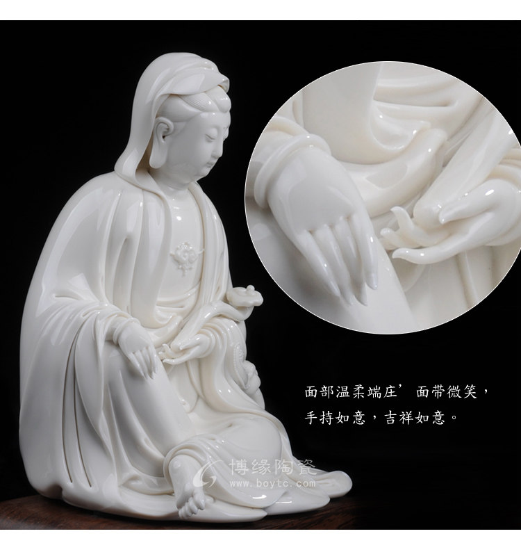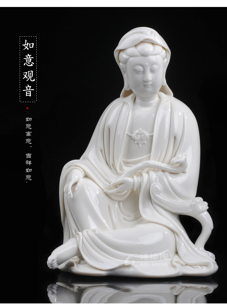您的位置: 德化陶瓷商城 -> 大师精品 -> 福建省工艺美术师—林建平作品 -> 如意观音 德德化白瓷传统坐像观世音菩萨 家居佛堂供奉摆件